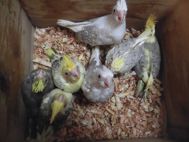コザクラが2羽とセキセイ2羽とジャンボセキセイ3羽になります。コザクラとボタンは来週~再来週には何羽か出て来る予定ですが、問い合わせが皆無ですので手乗りにしないで親鳥に育てて貰おうと思っています。