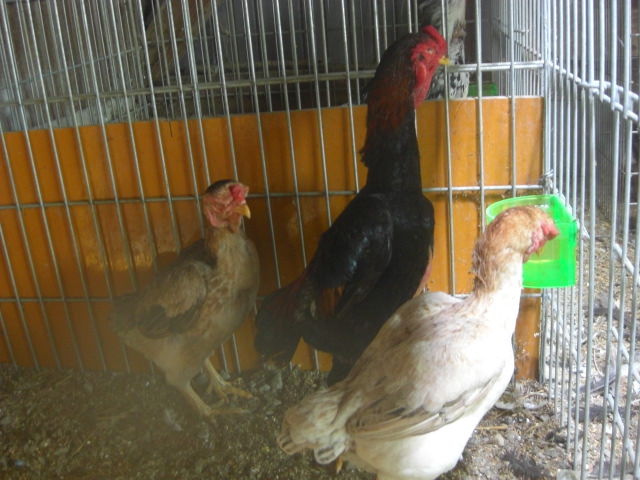 大和軍鶏の紹介です。 小鳥屋さんですがチャボや軍鶏等の鶏の問合せも少なくありません。今日はその中でも大和軍鶏を紹介します。♂2羽と♀3羽ですが、これがかなりの代物だと思います。 Tweet 関連記事 手乗りヒナがわんさかです。 手乗りヒナは殆ど居なくなりましたので 今週末も雨みたい ヒヨコとウズラです。 コザクラ多過ぎ(>_<) « その後の手乗り鳥の紹介 本日現在の手乗りヒナ »