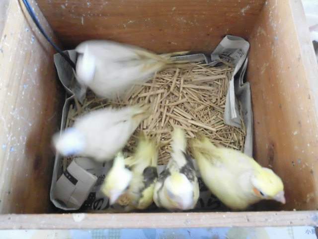 オカメインコで既に一人餌になっている子16羽、もう直ぐ一人餌になる子7羽、まだ飼育箱で2回/日の