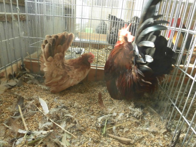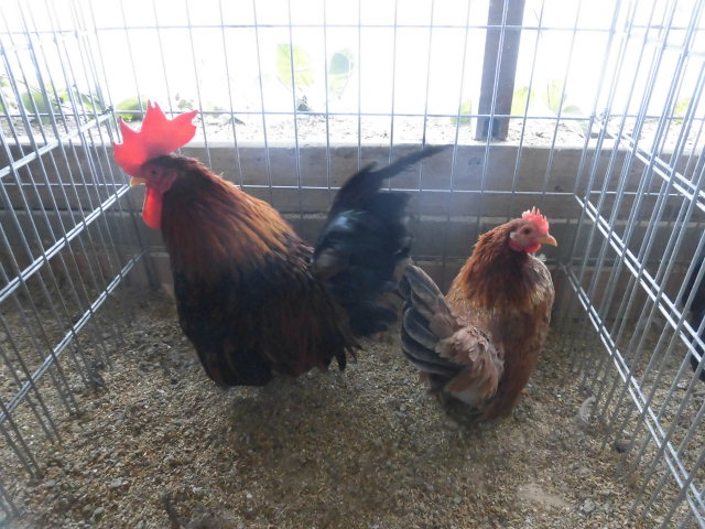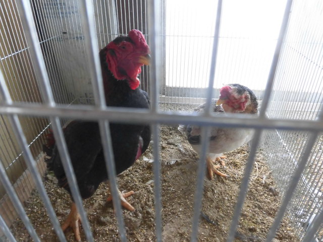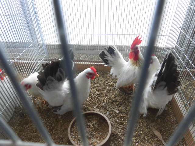 飼育鶏は主にチャボ類ですが、小軍鶏・大軍鶏・大和軍鶏(ごっつい顔や体)も居たりします。