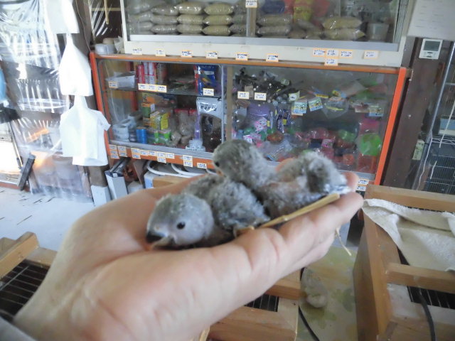 併せてセキセイインコを3羽です。セキセイインコの親鳥は2年前の80ペアから30ペアに縮小していますので、これまでのようなタイムリーなヒナの供給が難しいですが、まだそこそこは期待に応えられそう。