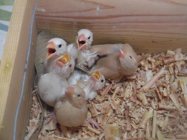 文鳥のヒナは今週月曜日の仕入れヒナですが、文鳥の成長は早いものです。もうこんなに大きくなっています。