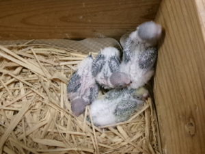 まだ小さいので、どの子が何か分りずらいですがウスユキ鳩(シルバー)が2羽・桜文鳥が2羽・十姉妹が4羽います。ウスユキ鳩と十姉妹はお客様から予約を頂いていましたので取り上げました。