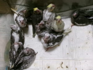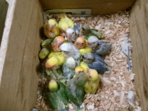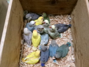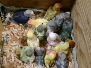 今週の入荷で手乗りヒナのテーブルは満杯になっています。