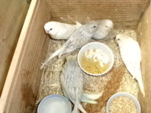 オカメも大半が一人餌の準備でケージに引っ越しましたが飼育箱には5羽位が残っています(写真撮影忘れ)