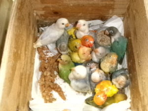 先発隊のコザクラ(30羽)が一人餌になってケージに引っ越しましたので、